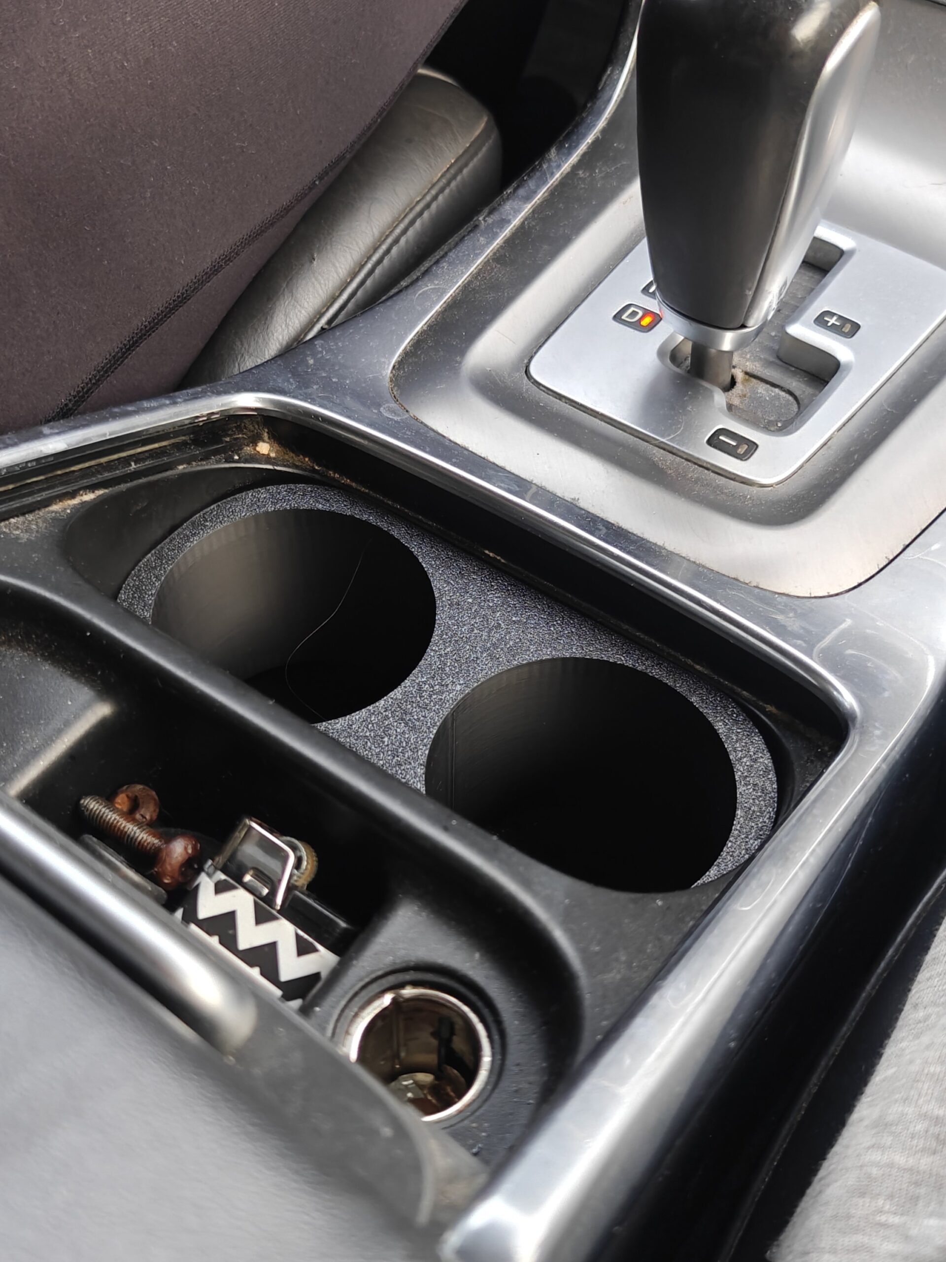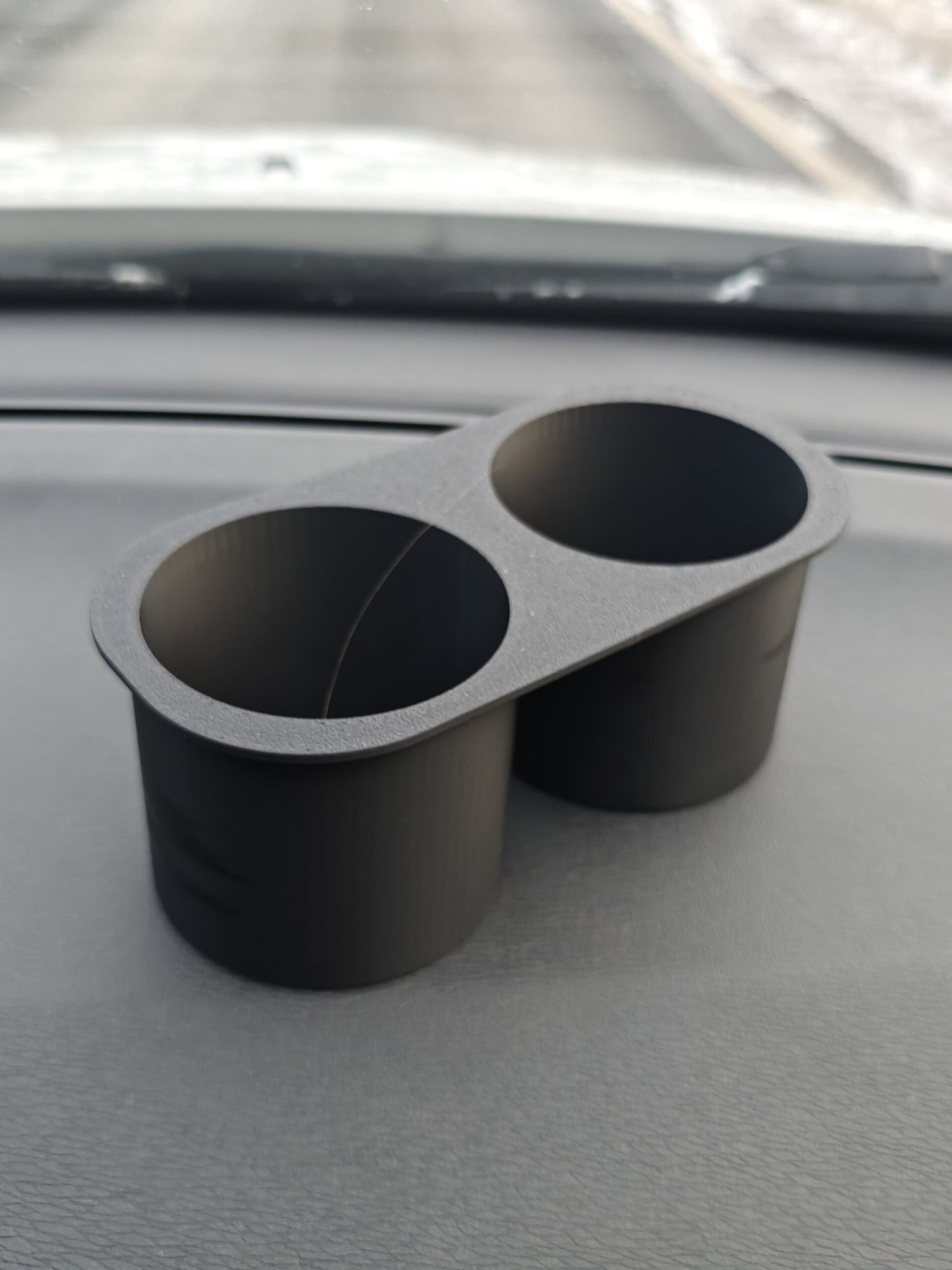 Eikö isot tölkit pysy juuri avattuna pystyssä? Tässä ratkaisu! Siisti 3D tulostettu mukitelineen parannuspala jolla estät tölkkien kaatumisen ajon aikana.